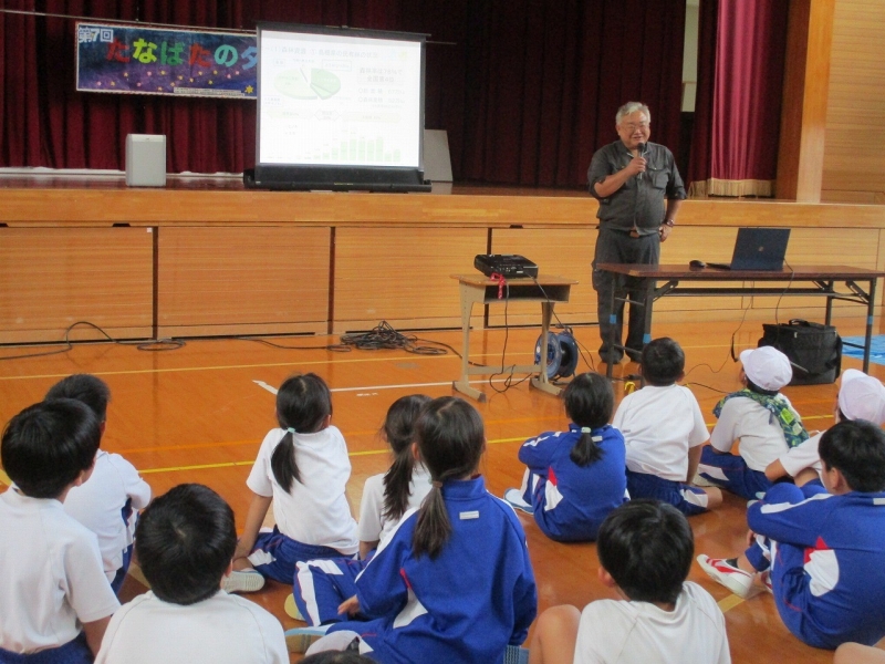 最後に行われたのは講義です。飾り炭を作るときに使ったのは『炭』です。あらかじめ無煙炭化器を使って、薪を炭にしておきました。講義では、薪の元の姿…木についての話がありました。以前は、人は森林との関わりが多くあり、自然から恵みをいただいていました。しかし、現在は人が森の中に入る機会が少なくなっています。他国に比べて日本の森林率は高いです。(何度も話を聞いている子どもの中には森林率が何割かを答える子供もいました。すごい!)とりわけ島根県は都道府県の中でもトップクラスの森林率です。参加者の皆さんにとって、自然との関わりを考えるよい機会になったのではないかと考えます。