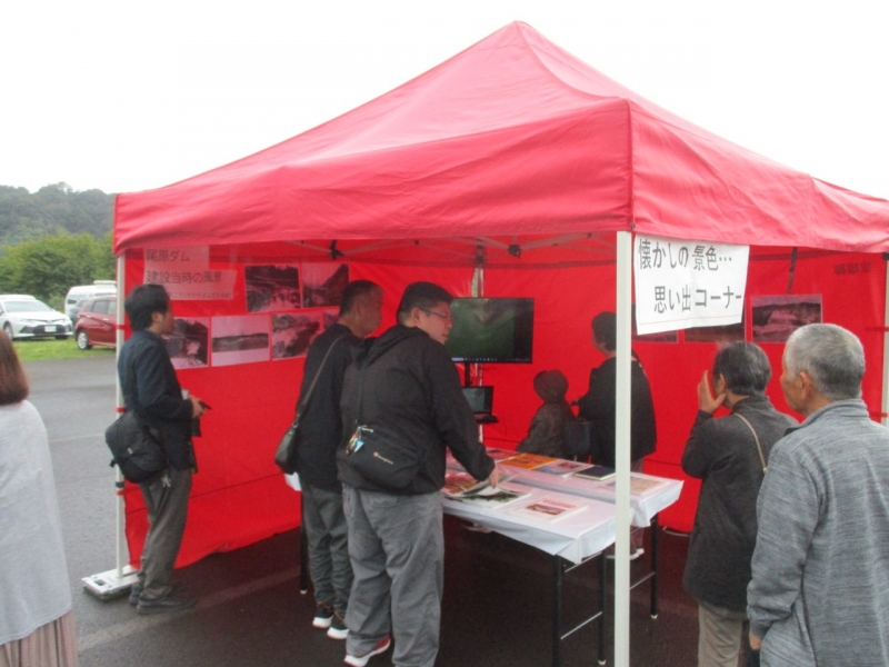会場内外では催しとして、働く車の展示、雲南警察署オープンポリス、凧作りと凧揚げ、写真コンテスト入賞作品及び園児の遠足の思い出絵画展示、バター作り体験、馬とのふれあい体験、尾原ダムの見学、巡視艇体験、レガッタ試乗、めだかすくいなど多数行われており、来場者の皆さんはそれぞれお目当ての催しを楽しんでいました。また、テント村では地元の食材を使った飲食ブースなど約20店鋪が出店され、大賑わいとなりました。