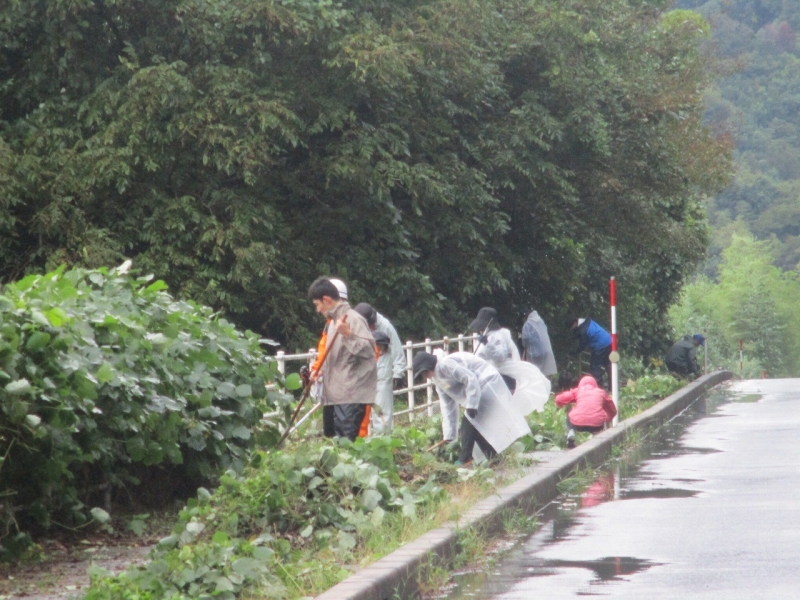 前日、そして当日の開始式時点でも雨が振っていました。作業開始後、しばらくしたら雨が弱くなってきました。しかし、雨が降れば草や土を持つときに重くなるなど、晴れの時とはまた違った大変さがあります。最終的にはどのくらいきれいになるだろうか…と心配しておりました。そんな中でも皆様のお力で、従来のCSR活動に負けないくらいきれいな景観となりました。大変厳しい作業環境の中、ご参加いただいた皆様には謹んで御礼申し上げます。誠にありがとうございました。