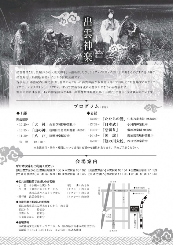 【イベント案内】第19回 雲南神楽フェスティバル 令和8年1月25日(日)、雲南市のチェリヴァホールにて『第19回 雲南神楽フェスティバル』が開催されます。今回は、雲南市に加えて、出雲市・奥出雲町・飯南町からの団体が特別出演として出演されます。 ★イベントの詳細はコチラ★ さくらおろち湖周辺を100%楽しむサイトで見る