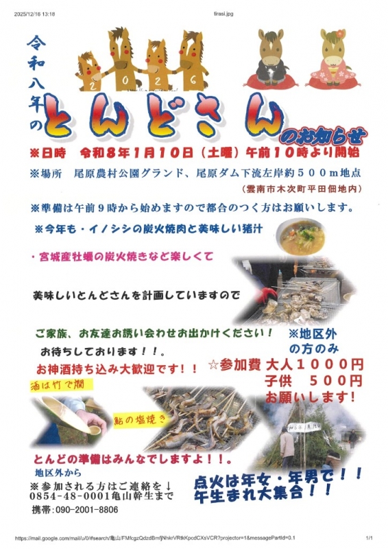 【お知らせ】尾原地区 とんどさん